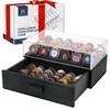 Large Black Wooden Challenge Coin Display Case with Clear Cover - Military Coin Display Case Holds 36 Coins on Top & 36 in The Storage Drawer - Versatile Coin Stand Holder & Poker Chip Display Case