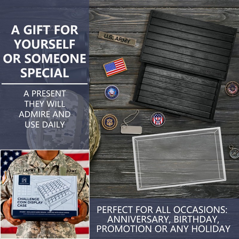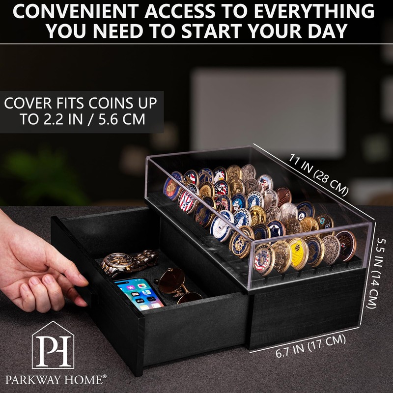 • 💎 DIFFERENT BUT IN ALL OF THE RIGHT WAYS: Each challenge coin holder display comes with a clear acrylic lid that offers both visibility and protection and a unique bottom drawer with a removable wooden insert for flexible storage