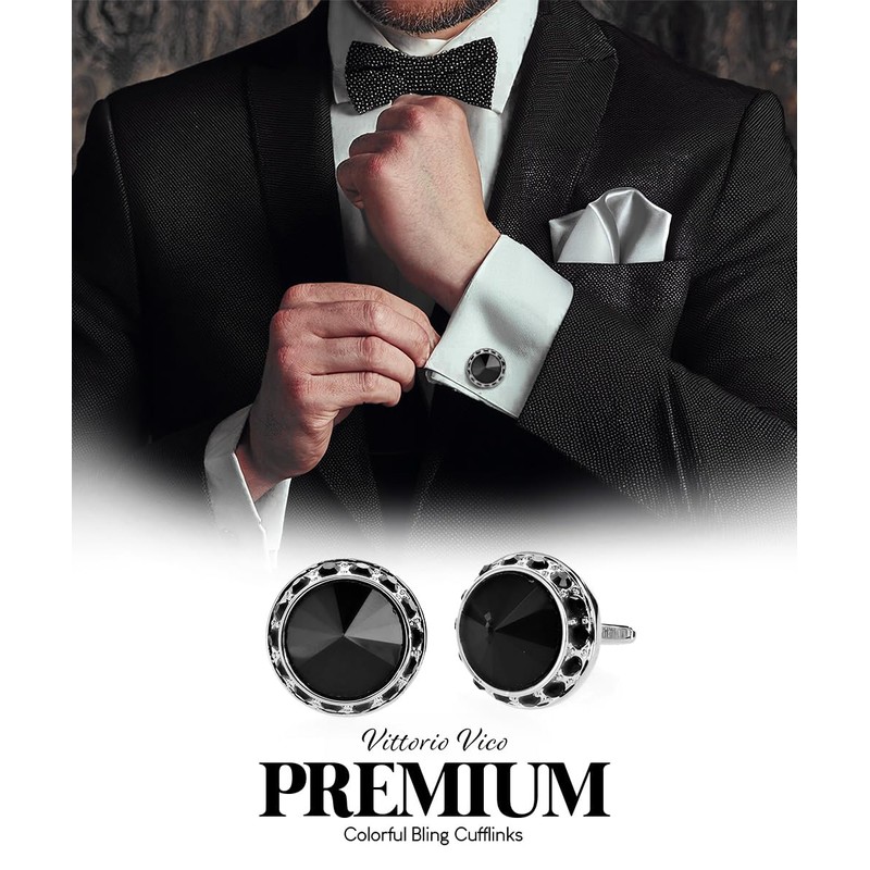 Large Bling Color Stone Cuff Links for Men – Tuxedo Suit Cufflinks (Black & Black/Silver, CL-1551)