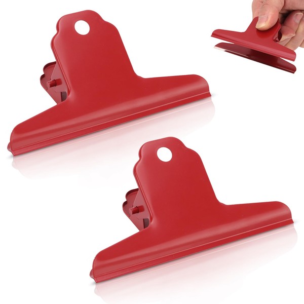 - METAL CLIPS: 2pcs air tight seal clip, our large bull clips size is 10 x 5.5 x 3.7cm / 3.9 x 2.2 x 1.5in, metal binder clips is made in high-quality metal material, durable and not easy to deformation, not easy to rust. Can use as food clips, bag clips, chip clips.