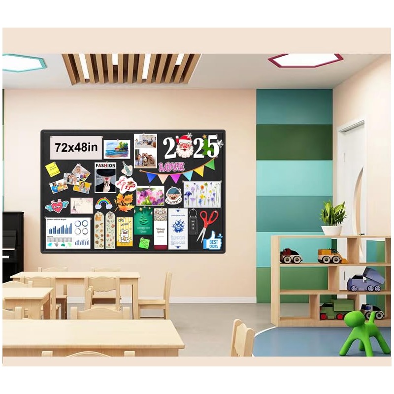 Large Bulletin Board, 72x48 Inches Cork Board Alternative, Large Felt Board Decorative Pin Board for Wall, Foldable Photo Board Self-Adhesive Vision Board with 36 Pushpins Black