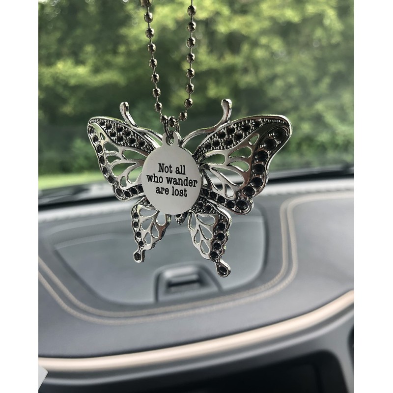 Large Butterfly Charm and Not All Who Wander are Lost Message Charm Rear View Mirror Car Charm Inspirational Gift New Beginnings