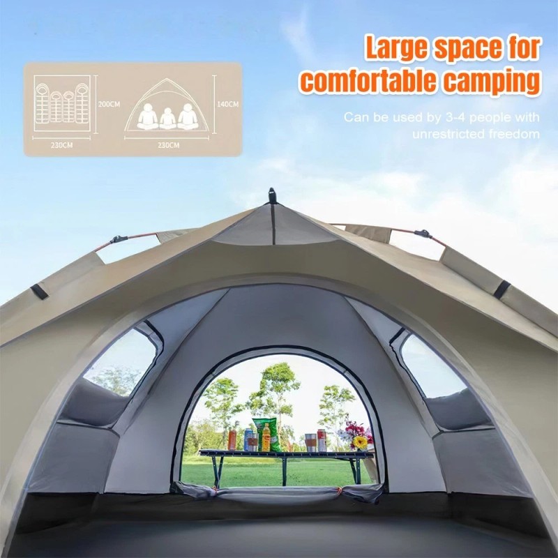 Large Camping Tent 4-Person Easy Pop Up Tent with 2 Doors - UPF50+ Waterproof
