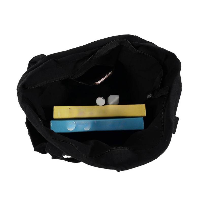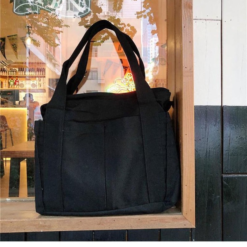 Large Canvas Tote Bag with Zipper, Multi-pockets Shoulder Bag with Extra 4Pockets, Thick Canvas Laptop Bag Purse (Black)