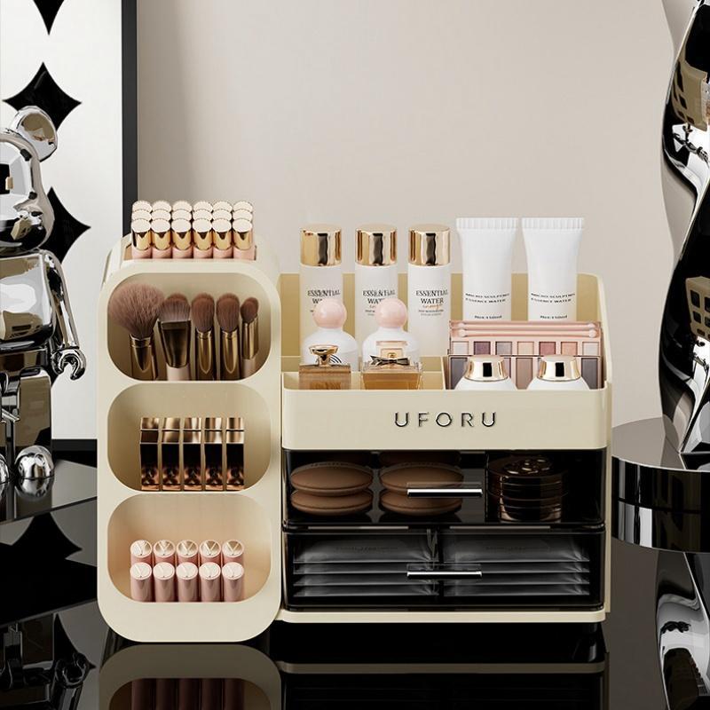 Large Capacity Makeup Storage Box, Multi-functional Makeup Brush Lipstick Eyebrow Pencil Storage Box, Desktop Makeup Organizer for Home & Travel, Makeup Box, Cosmetics Organizer Storage