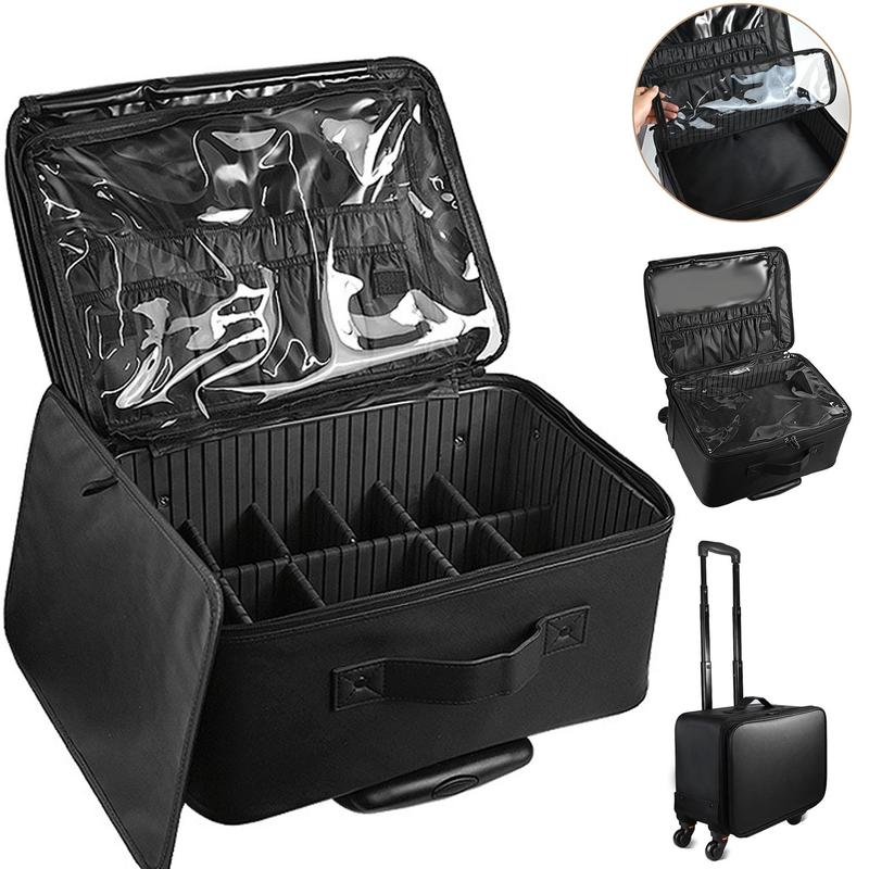 Large Capacity Rolling Makeup Case, Multi-layer Storage Makeup Trolley Case, Waterproof Makeup Travel Case with Rotating Wheels, Makeup Organizer