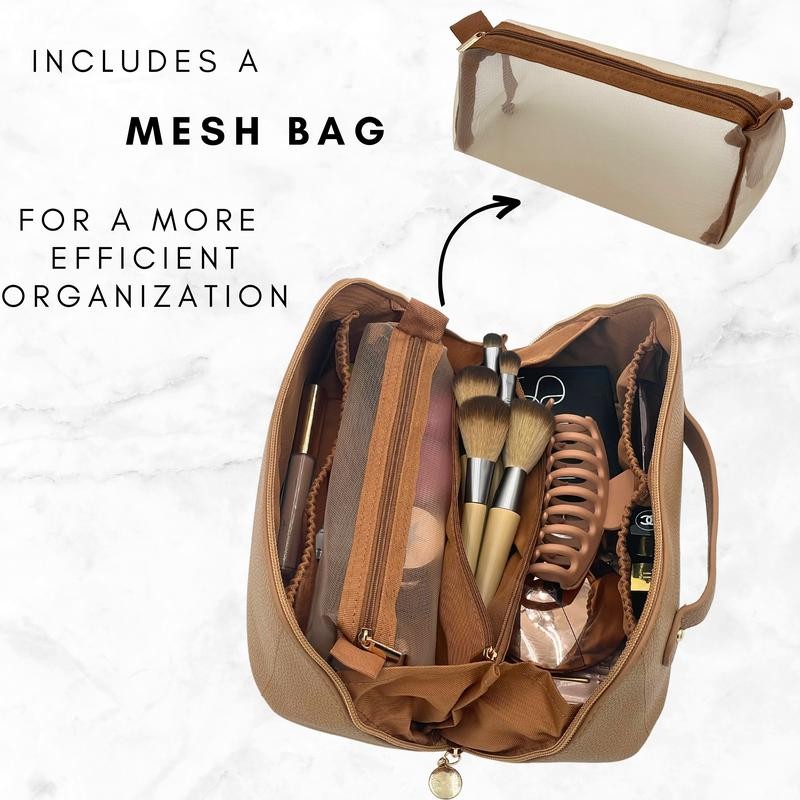 - Large Capacity Travel Cosmetic Bag, Travel Makeup Bag, Opens Flat for Easy Access, Toiletry Bag, Vegan Leather, Bridal Shower Gift