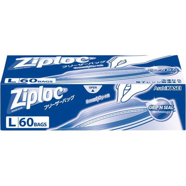 Large Capacity Ziplock Freezer Bags, Large, 60 Bags
