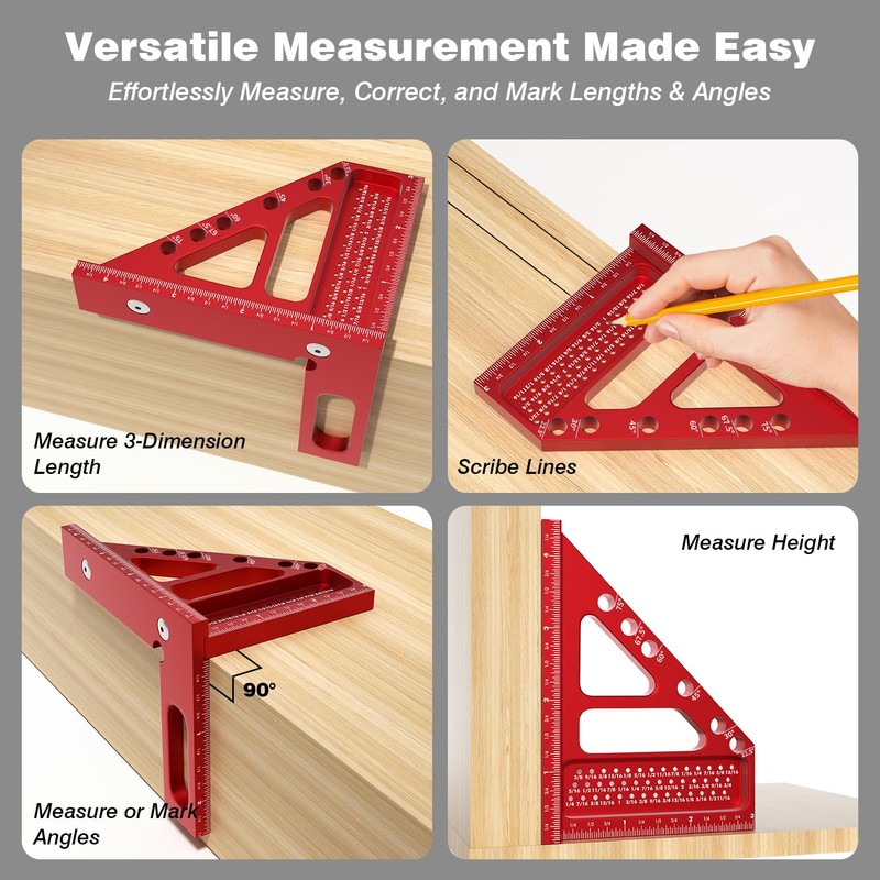 - All-in-One Measuring Companion:From measuring 45°/90° angles to scribing parallel lines, checking squareness, and layout calibration, this 2-piece triangle ruler set is an essential for engineers, DIYers, woodworkers, and construction pros alike.