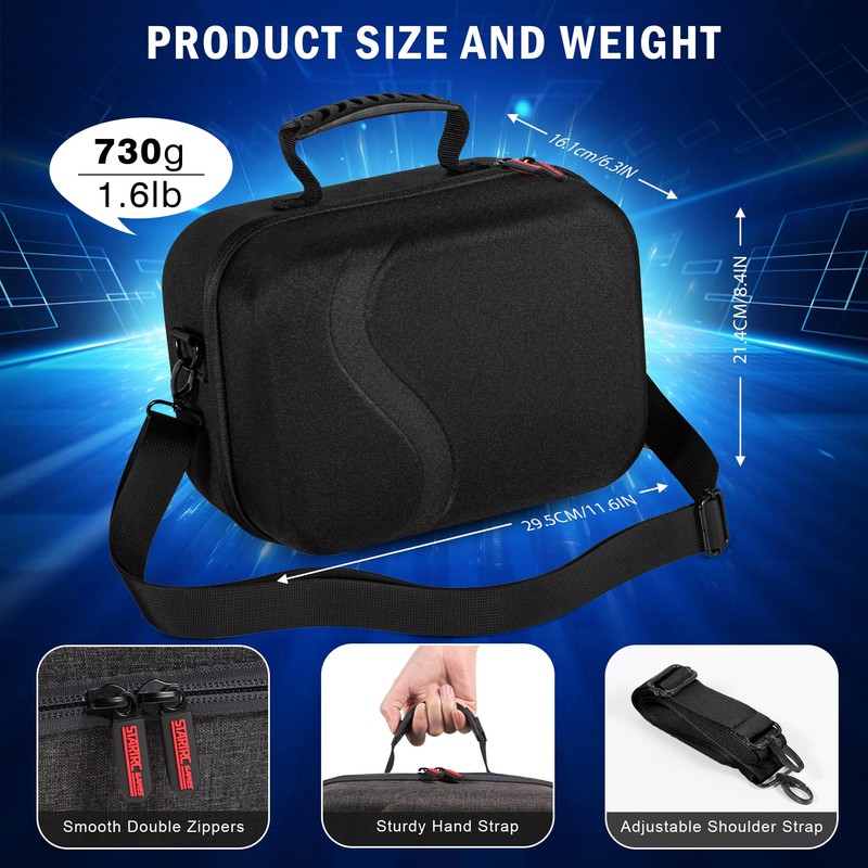 - 【5】PORTABLE AND CONVENIENT: The storage bag measures 11.6×8.4×6.3 inches and weighs 1.6 lb. It is large-capacity and lightweight, perfectly for Oculus Quest 3S or for Meta Quest 3 and their accessories for travel or home storage. An ideal choice for gamers.