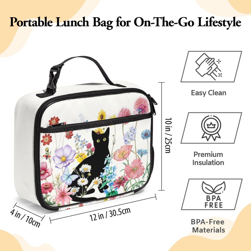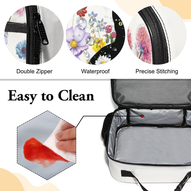 - Portable Lunch Bag: Take this portable floral cat lunch bag wherever you like, as it is not only convenient but also waterproof. Perfect for school or outdoor activities like beach, picnic, travel, camping, and hiking.
