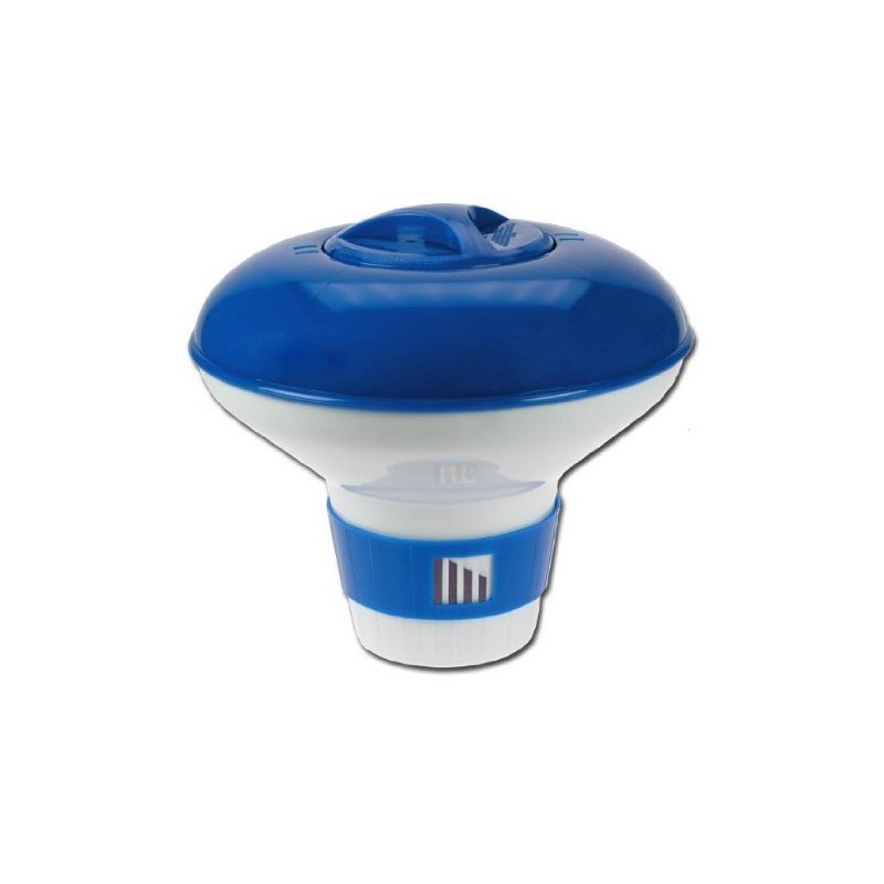 The Large Chemical Floating Dispenser is used in most swimming pools to slowly release chlorine into your pool, adjustable chemical dosage site at the base to increse and decrease amount of chemical you want to dispense