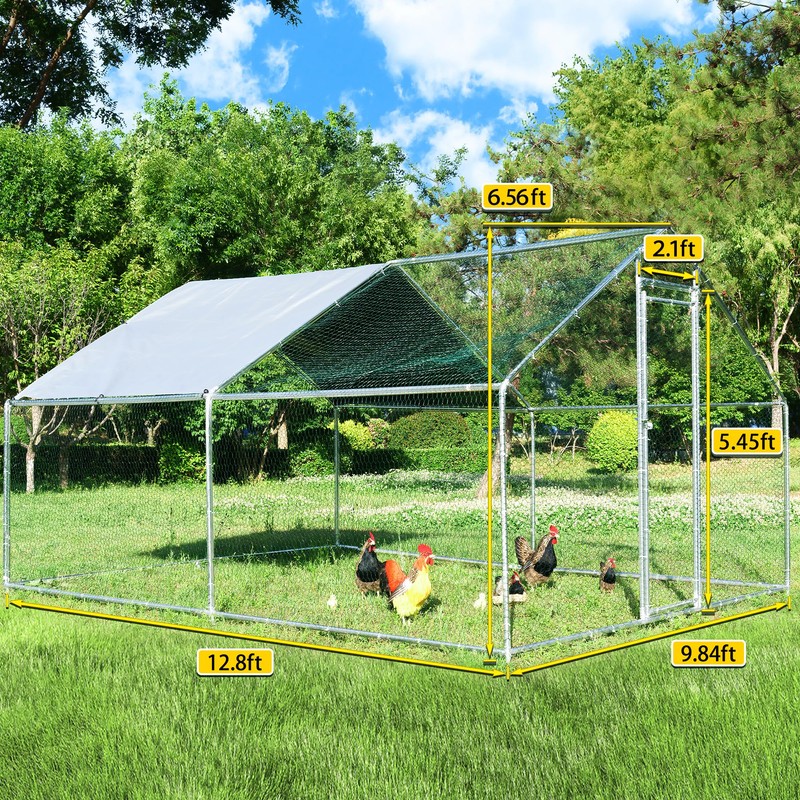Large Chicken Coop Metal Chicken Runs for Yard with Cover Outdoor Pet Pens Poultry Cage Duck Rabbit House Backyard Use (13'Lx10'Wx6.6'H)
