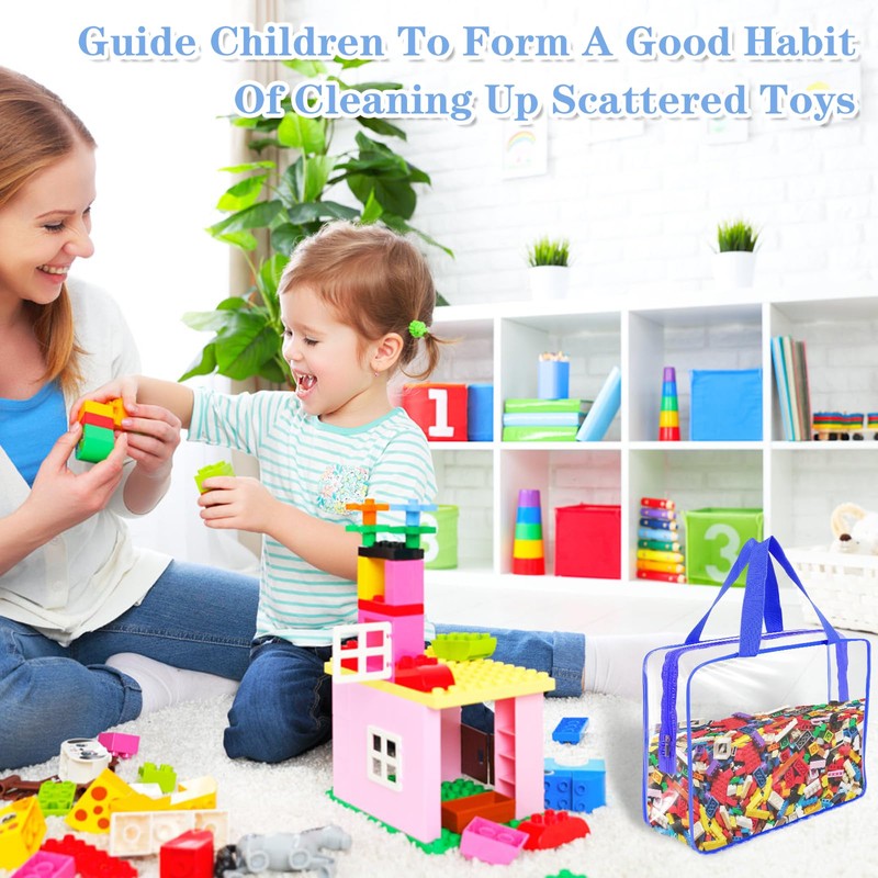 - 【THOUGHTFUL DESIGN】: This pvc toddler zip kids storage bag has an overall transparent design, kids can easily identify the items inside and find the toys they want. The toy storage bag has two carrying handles, stronger load bearing capacity, more sturdy to carry toys, books, etc. when you go out; double zip design, can be fully unzipped, easy to pack.