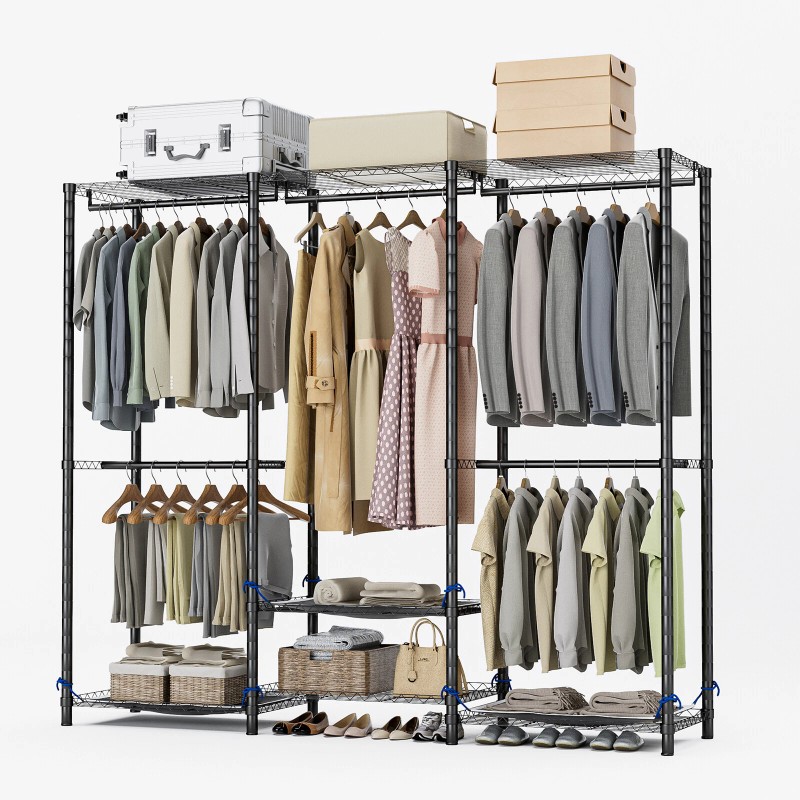 Large Closet System Clothes Rack Open Wardrobe Organizer Garment Rack with 5 Rod