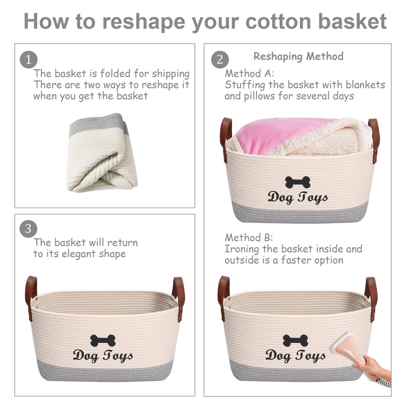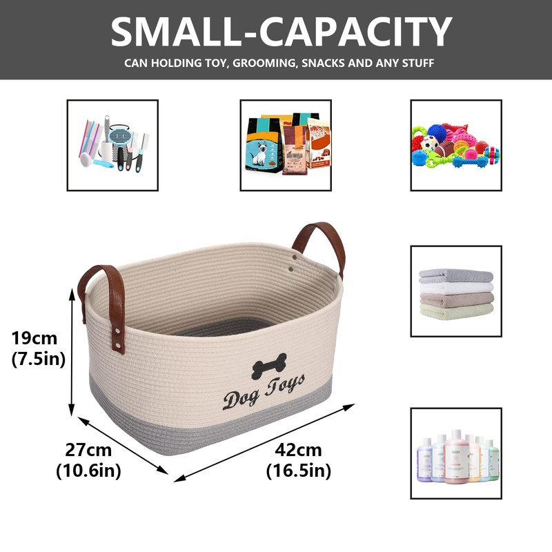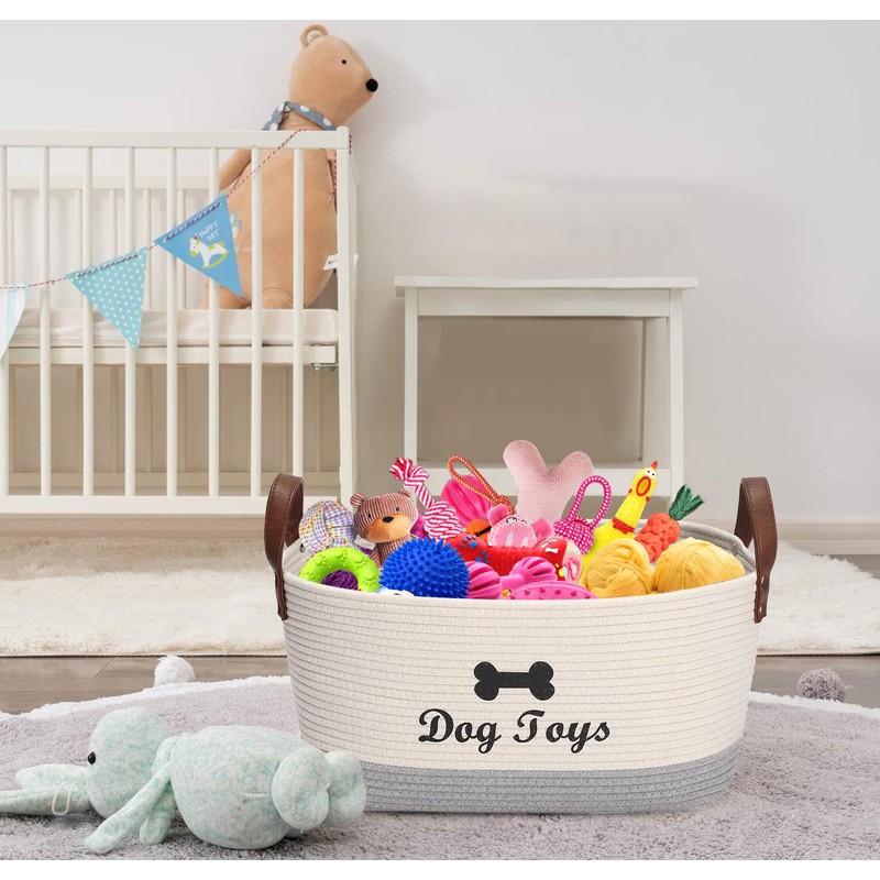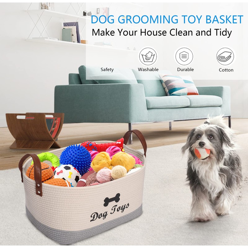 - 3: Eco-friendly pet toy storage basket: Made from tear resistant cotton rope, durable, non-toxic. The handles make it easy to transport or move when needed.