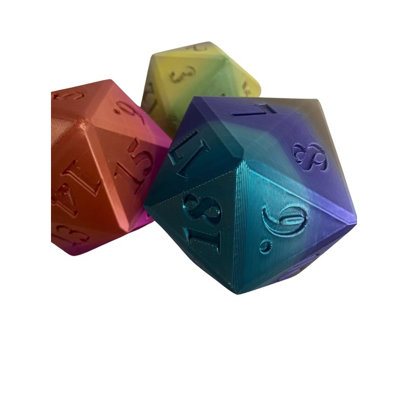 - DESIGN: Large D20 polyhedral die featuring vibrant multicoloured surfaces, perfect for tabletop role-playing games