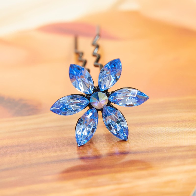 Large Decorative Hair Stick Daisy Flower Rhinestone Crystal Hair Bun Stick, Blue