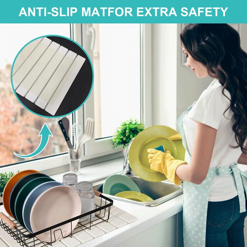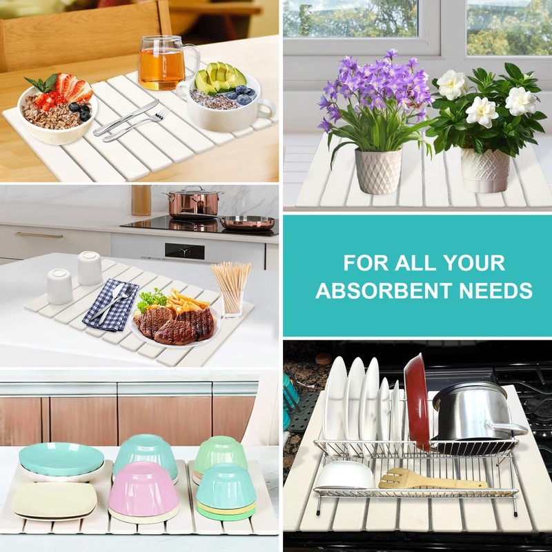 - Natural Diatomaceous Earth Material: Crafted from high-quality, food-grade diatomaceous earth, this kitchen drying mat is a durable and eco-friendly alternative to silicone or fabric dish pads. Safe for your home, it promotes a healthy living environment