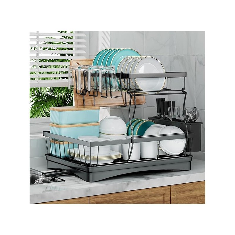 Special Feature:Auto-draining, keep countertops tidy and dry, No tools required, easy installation, 2-tier design provides more space