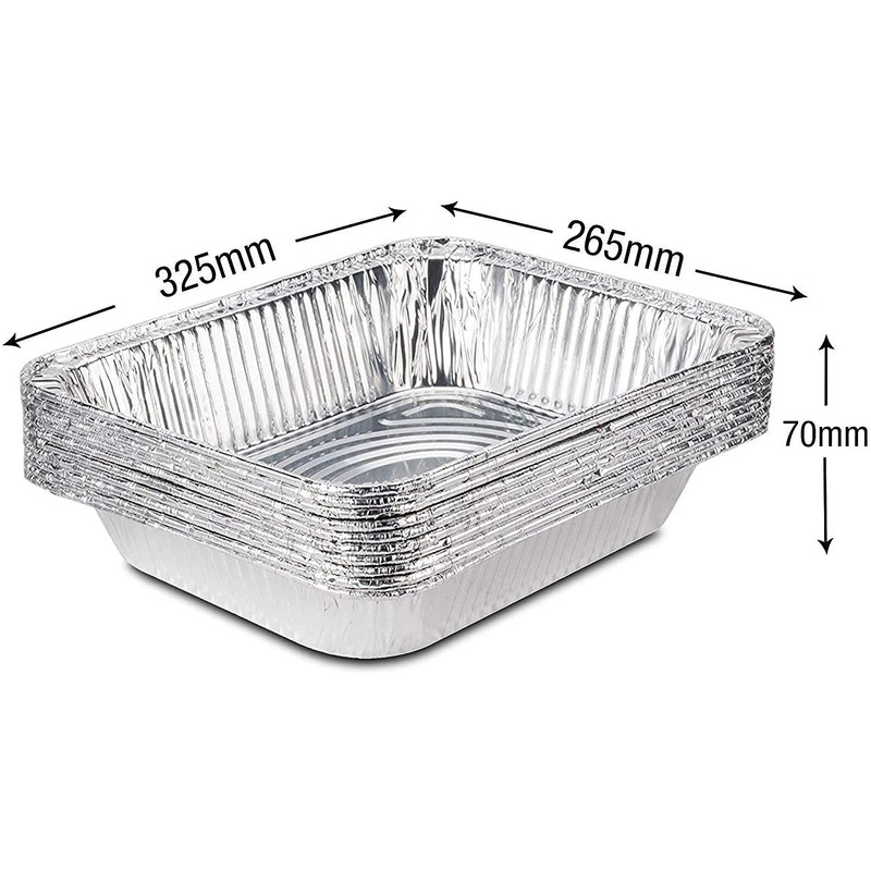 Large Disposable Aluminium Foil Trays Containers & Foil Lids for Baking Roasting Broiling Cooking Food Storage & More Pan 32 x 26 cm Pack of 10 Trays 10 Lids