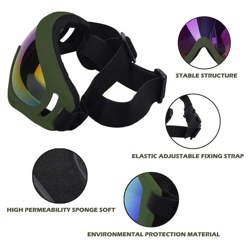 - Premium Material: The lens is made of PC material, the frame is made of soft TPU material, and the side that contacts the dog has a foam pad. UV Protection. Functionality and comfort coexist, and dogs will not feel tired after wearing them for a long time.