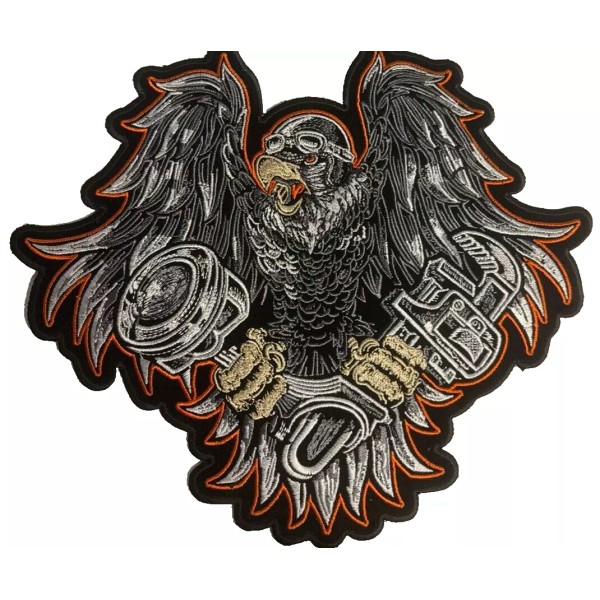 Large Eagle Mechanic Bird with Wings Patch 10 inch Iron On
