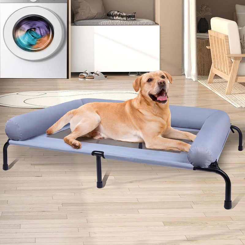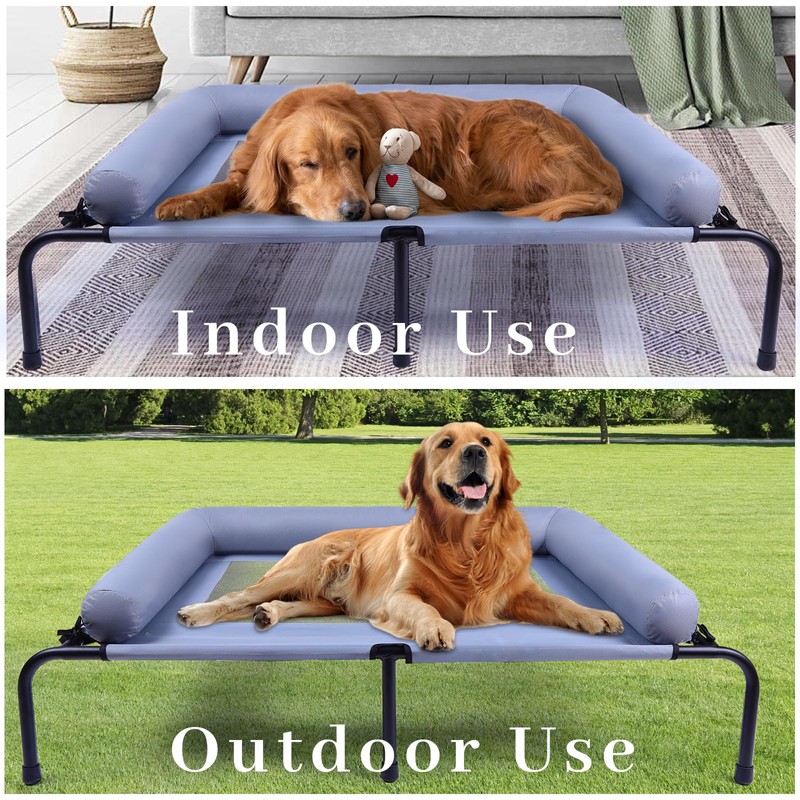 Large Elevated Dog Bed with Pillows, Outdoor Cooling Raised Pet Bed with Bolster, Indestructible Chew Proof Dog Cot with Breathable Teslin Mesh, Washable Durable Dogs Hammock for Large Indoor(XL)