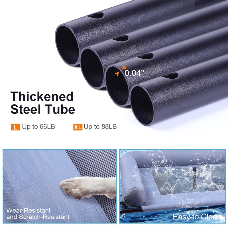 - 【Easy to Assemble】: Comes with detailed instructions, no tools or screws required. It only takes 10 minutes to assemble this elevated dog bed large. If you have any questions about the product, damage, size, dissatisfaction, logistics, etc., please contact us and we will give you a satisfactory solution within 24 hours.
