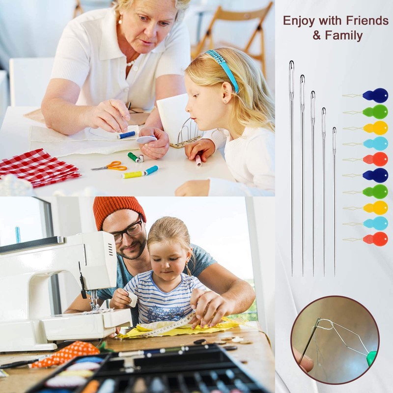 - ✔CONVENIENT THREADING: High quality large eye needles are easier to thread compared to traditional small eye needles, we used to get annoyed for threading, but now you can say goodbye to this urgent and frantic feeling, when not using the threader, threading large eye needles is also 3 times easier than ordinary needles, and when the large eye needles are used together with our complimentary threader, you will be able to finish threading needles in seconds, saving your precious time.