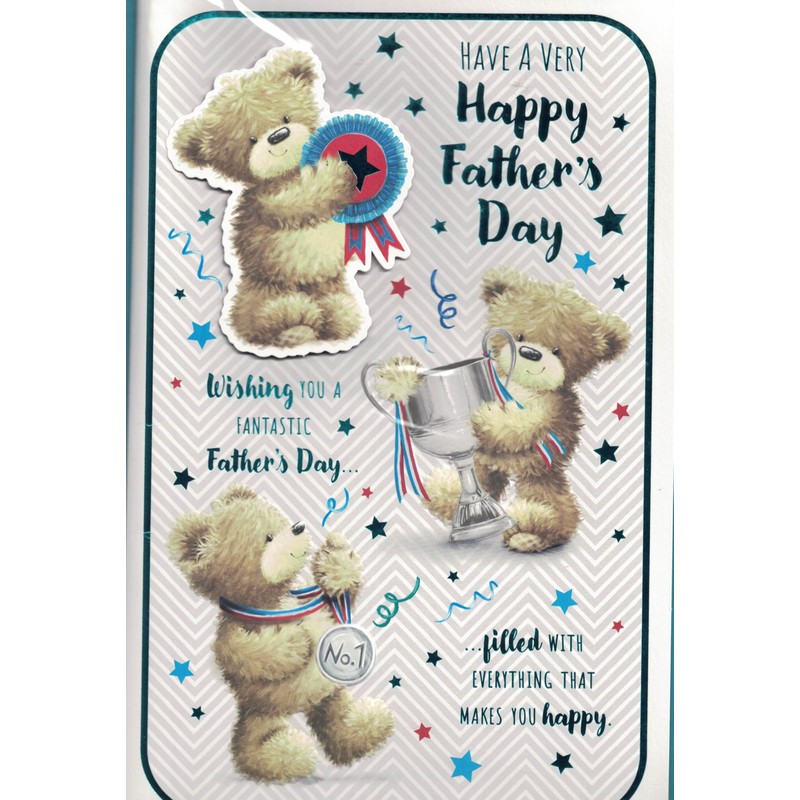 Large Father's Day Card with Trophy Bear Design, 30.5 x 20.3 cm, Multi-Page Insert