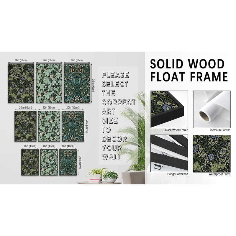 Large Framed Wall Art Flower Pattern, William Morris Floral Wall Pictures 16"x24"x3 Green Plants Painting Prints Modern Botanical Canvas Artwork for Living Room Bedroom Home Office Kitchen Decor