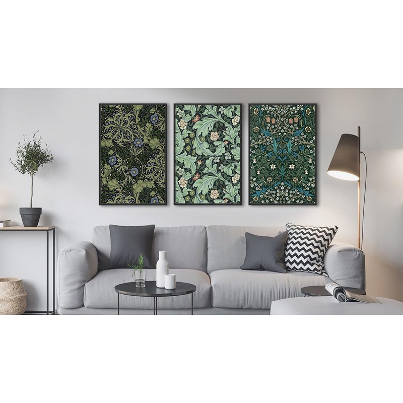 - Canvas Wall Art Set: 3 pieces with William Morris floral pattern designs, each 16"x24" (Combined 48"x24")– Hang as a Statement or Split for Versatile Styling