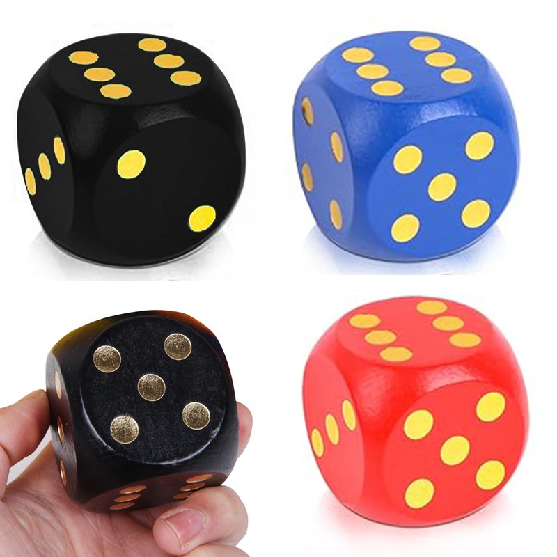 - 【Large Dice for Children & Family Fun】This set includes 3Pcs of vibrant red, blue, and black wooden dice, designed with Round Edge Wooden corners for safe, comfortable handling. Perfect for funny games and educational play, these giant dice are easy to read and ideal for little hands.
