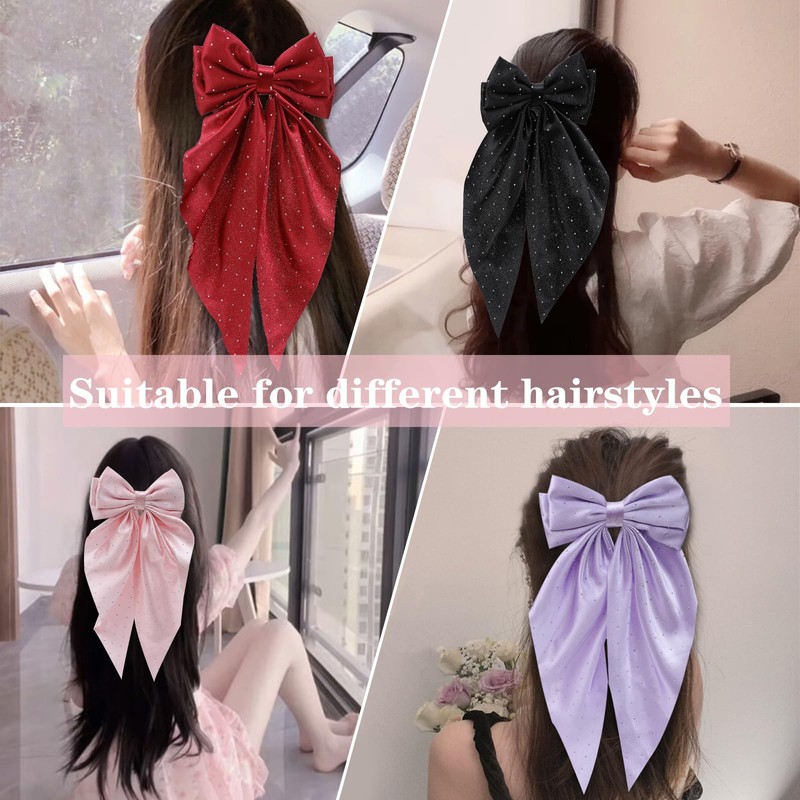 • Fashion Design:The fashion hair bows with large handmade bow with rhinestone, clip them extra large hair bows into your hair to make you look more elegant and charming.