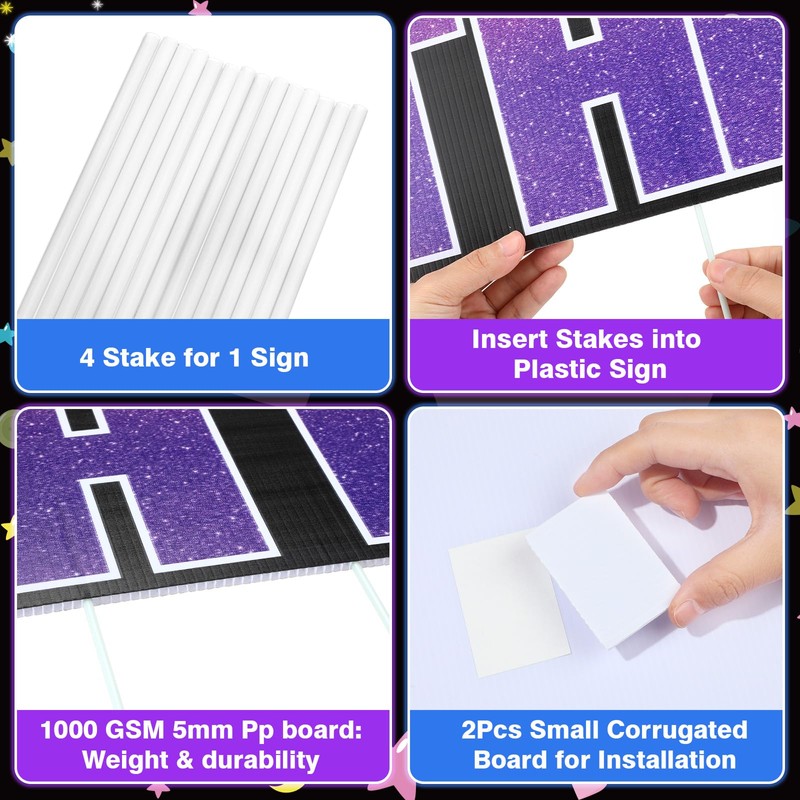 - Effortless Setup & Secure Display: Effortlessly install this celebratory happy birthday lawn sign with the included sturdy stakes that anchor it firmly into your garden, lawn, or yard. Designed to withstand various weather conditions, the sign remains stable and visible throughout your birthday event, welcoming guests with its charming exuberance.