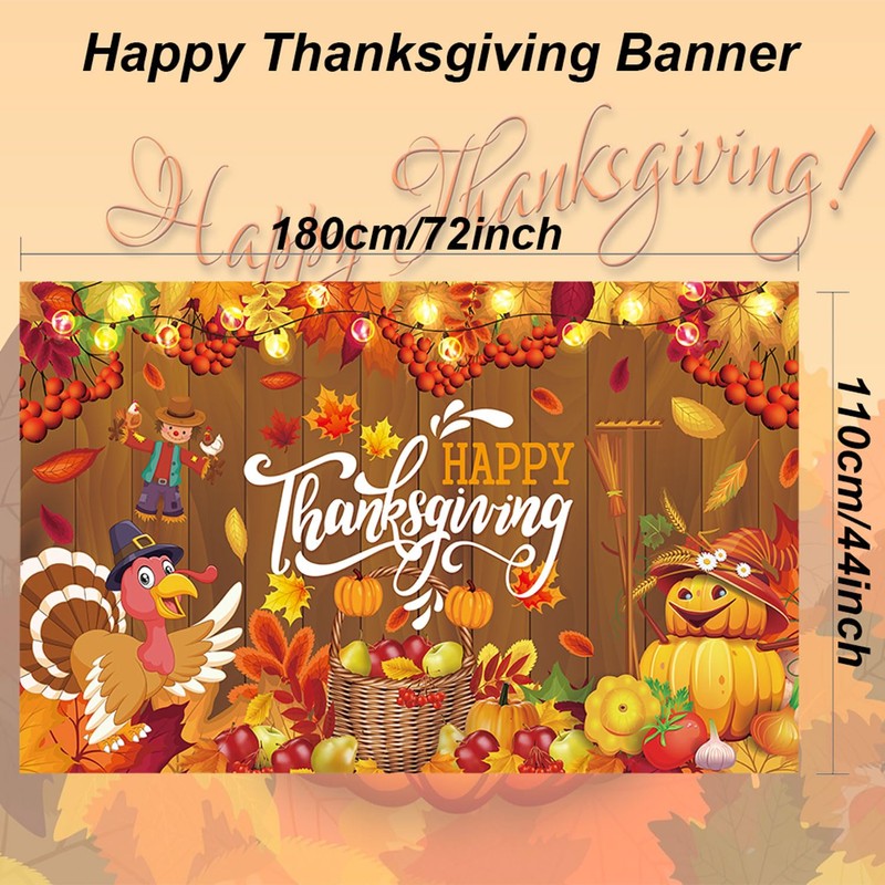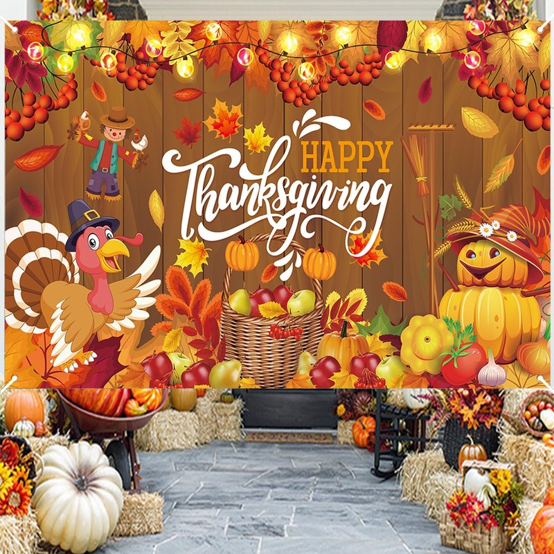 - Thanksgiving Background Backdrop:Thanksgiving wall backdrop with maple leaves,turkey,scarecrow,pumpkin and other fruit pattern signs,it is full of thanksgiving festive atmosphere, which is great for thanksgiving party decorations