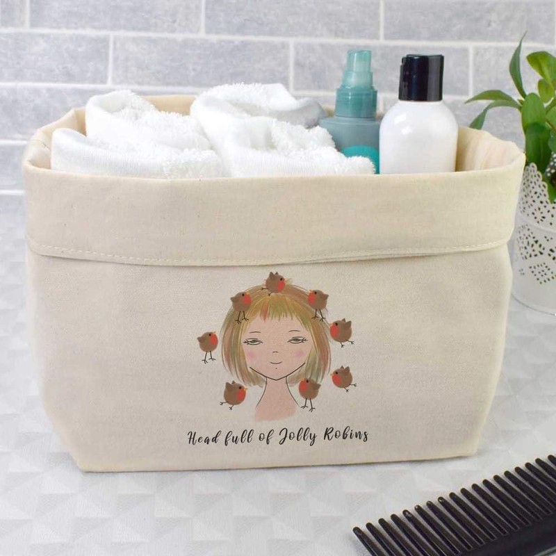 Large 'Head Full of Jolly Robins' Canvas Organiser/Storage Bag (OR00033519)