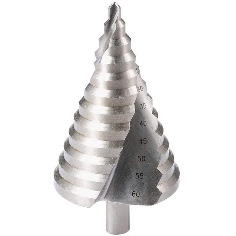 Large HSS Step Drill Bit, 12 Sizes Titanium High Speed Steel 6 to 60MM Drill Bit for Sheet Aluminium Metal Wood Hole Drilling, Big Multiple Hole Stepped Up Bit for DIY Lovers (1 PC Step Drill)
