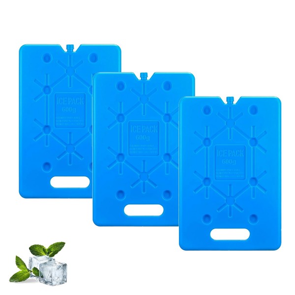 Large Ice Packs for Cool Bag - 3/6 Pieces of 600 ml - Reusable Ultra Thin Cooling Element - Suitable for Outdoor Activities to Take Away to Keep Food Fresh (Blue 600ML-3)