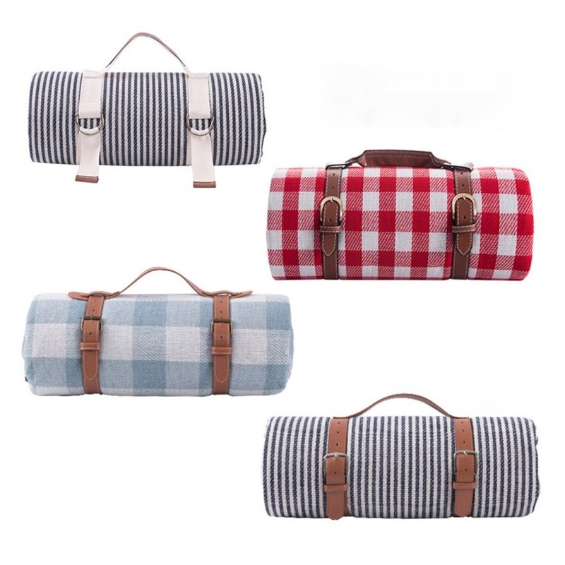 Large leather strap waterproof mat in 2 colors 2x2m blue big check