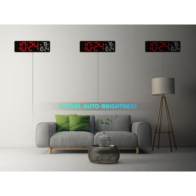 Large LED Digital Wall Clock with Date, Temperature, Auto-Brightness, Auto-DST | Big Digital Clock for Bedroom, Desk, Classroom, Living Room, Kitchen, Office, Gym, Farmhouse, Xmas Gift for Seniors