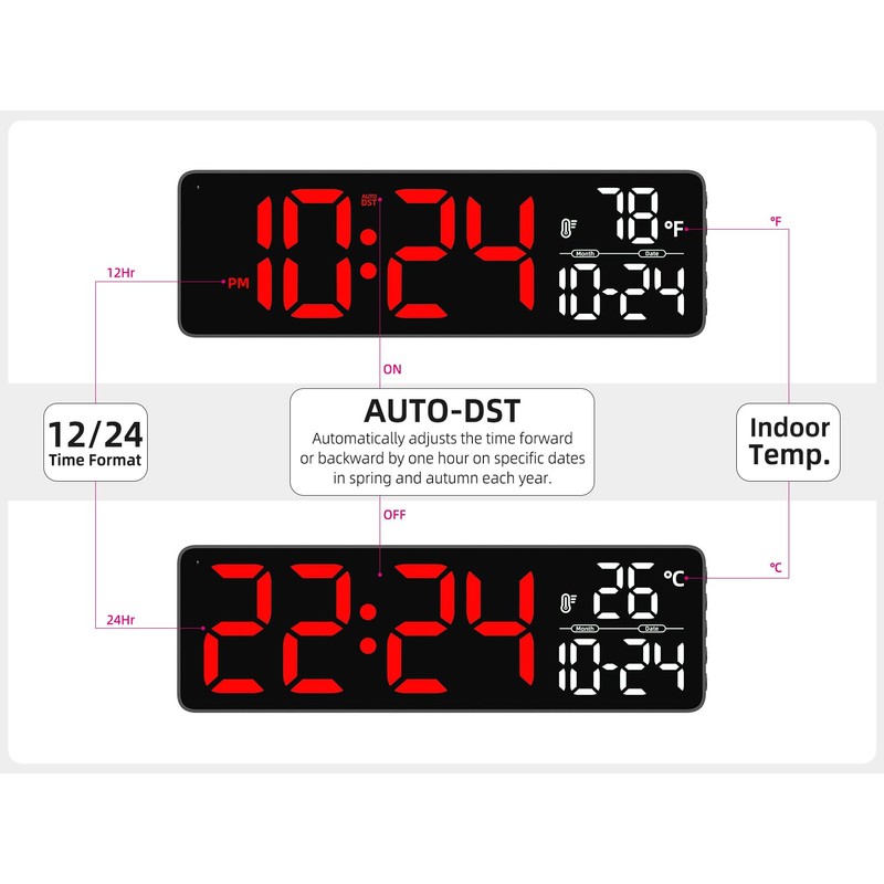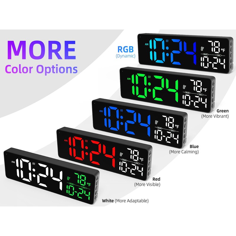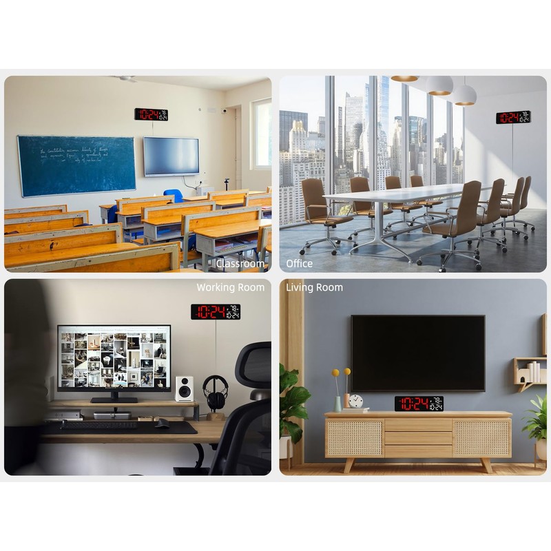 - [Large Digital Wall Clock] -- The big wall clock has a clear 13-inch LED display with sharp, easy-to-read digits. You can see the time clearly from up to 10 meters away, making it suitable for various environments such as bedrooms, classrooms, living rooms, kitchens, offices, gyms, and farmhouses.