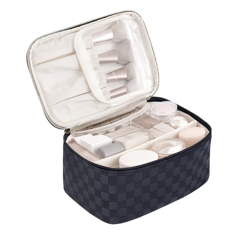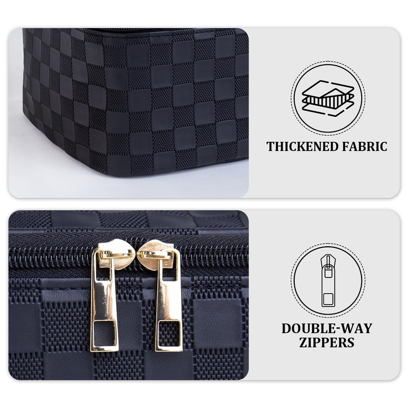 - 💗Detachable Divider :The Large make up bag has a built-in multifunctional divider and flexible Velcro design, so that the divider can be removed according to the needs of makeup to store larger items, such as curling sticks, hair dryers and so on.