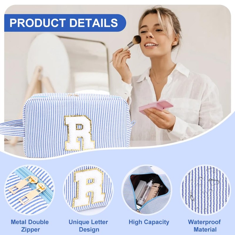 - 【UNIQUE INITIALS DESIGN】 This initials makeup bag is designed with multiple compartments to keep your cosmetics neatly organised. The front of the bag has unique chenille letter stitching, not easy to fall off. Suitable for your daily cosmetics and tools.