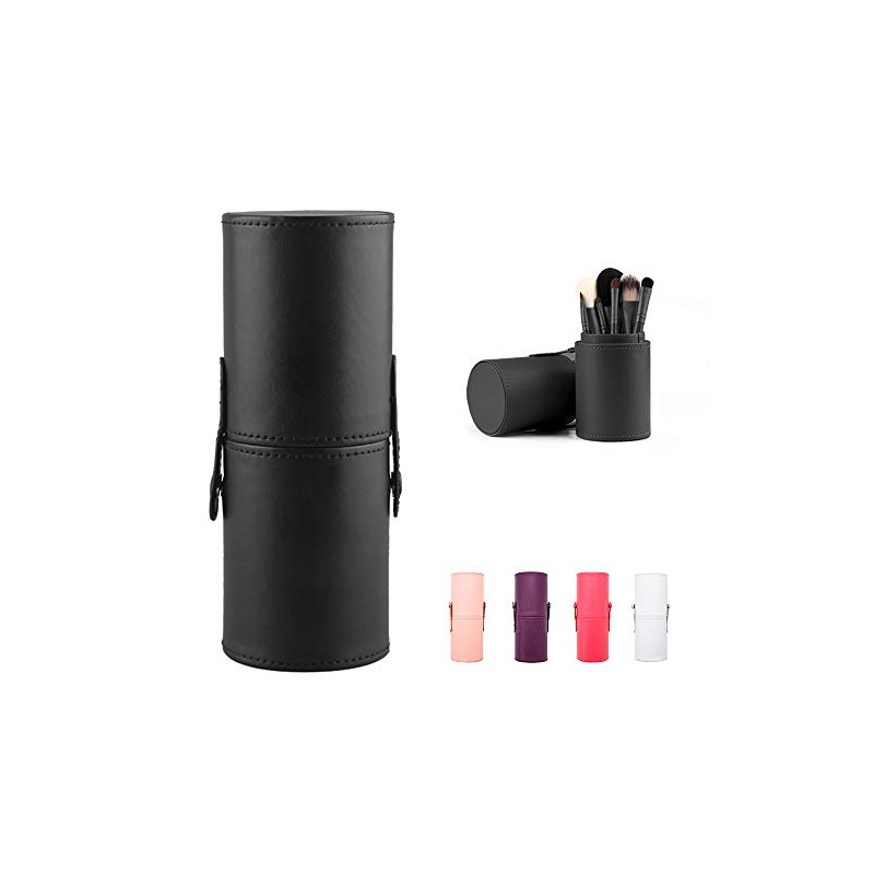 Large Makeup Brush Holder Leather Travel Portable Brushes Storage Case (Black)