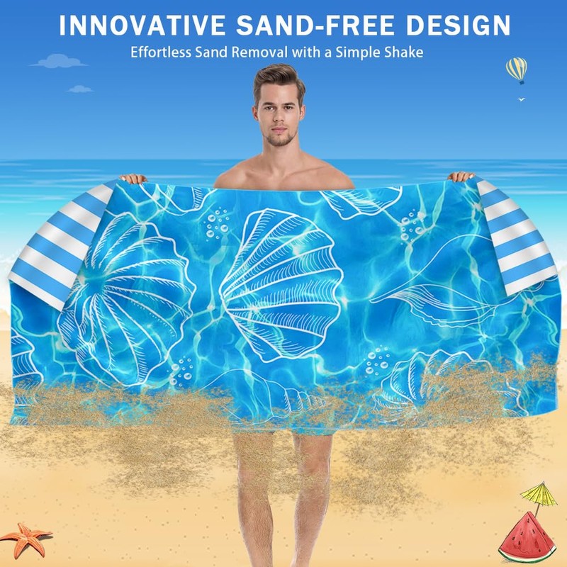 - 【Sand-Resistant Microfibre Fabric】Sand-Free Beach Towel Crafted from premium microfibre beach towel material, it resists sand sticking and shakes off sand instantly. No more gritty discomfort—enjoy hassle-free relaxation on sandy shores. A must-have sand-resistant beach towel for beach lovers and families.