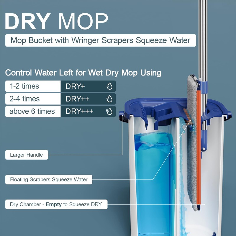 - 【Hands-Free Cleaning】WBKATN flat mop system features a dual-chamber bucket for WASH & DRY. Simply insert and pull to remove dirt and squeeze out water, saving time and effort.
