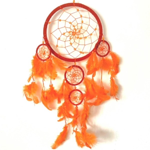 Large Orange Suede Dream Catcher With Matching Feathers & Beads