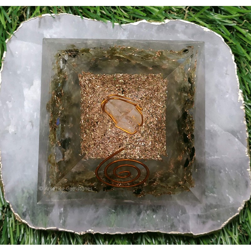 Large Orgone Pyramid | Glow in Dark Labradorite Pyramid Crystal | Orgonite Pyramid | Organ Pyramids Positive Energy Healing